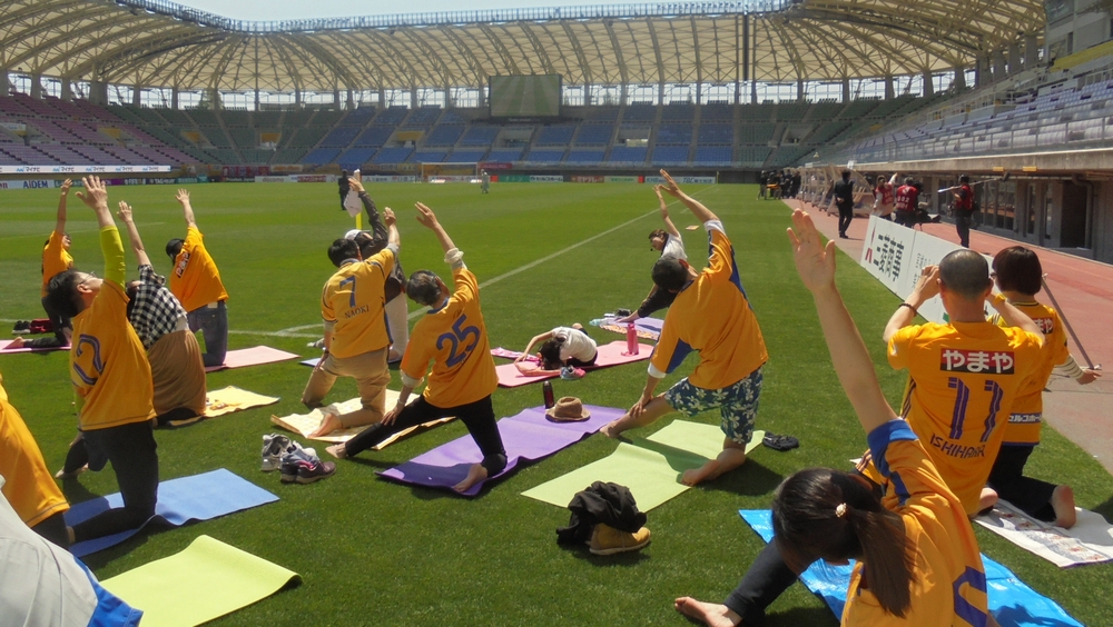 日頃の疲れでこり固まった筋肉を伸び伸びとユアスタのピッチ上で一緒にほぐしませんか?ヨガに興味はあるけど難しそう・・・と思われている方や初心者の方でも気軽に参加いただけるレッスン内容です♪