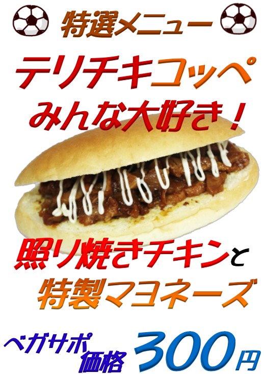 清水戦の限定コッペは3種類!ベガコッペで力をつけて大声援をお願いします!