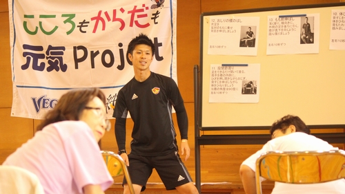 9月18日(水)、国見ヶ丘地域包括支援センター主催の「ベガルタ仙台元気づくり教室」 第1回目が実施されました。クラブ創立25周年記念事業【KIZUNA未来プロジェクト】の一環としてメタボリックシンドローム対策への取り組みへの側面もあり、これまでクラブが実施してきた単発の体操教室とは異なり、全8回シリーズで毎週水曜日に体操を行います。
