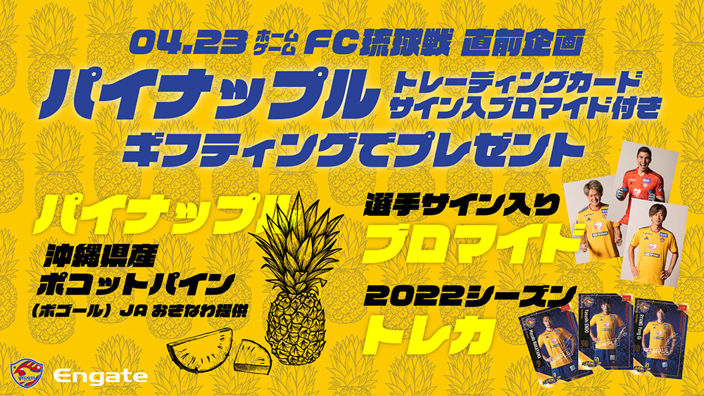 【4/23 J2 琉球戦】 エンゲート FC琉球戦直前 パイナップルプレゼント企画のお知らせ