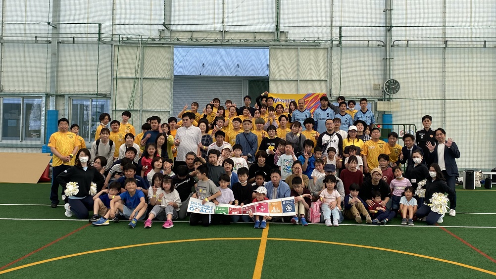 キャラバンは、尚絅学院大学の学生を中心に会場運営を行い、知的障がい者サッカーチームSendai Forzaの選手は、コーチのアシスタントを務めます。今回のキャラバンには、深谷晃祐 多賀城市長にもご参加いただきました。
