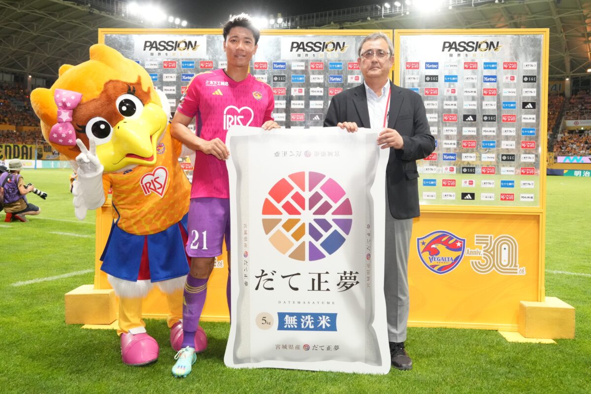 今年は勝ち試合が多いので、嬉しいことに出番が多くてですね(笑)去年は、若狭選手に送った時、パネルの「だて正夢」を見て「うちはいつもこれ食べてます!!」って言ってもらって、すっごく嬉しくなりましたね。先日はプロデビューしたばかりのGKの梅田選手が敢闘賞でしたね。選手のなかでも“みやぎ米”は定着しているようで、1年分として60kg贈っているので、チームで分けながら食べていただいているのではないでしょうか。
