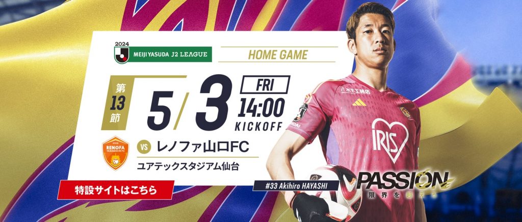 [5月3日(金・祝) 14:00 ユアテックスタジアム仙台]