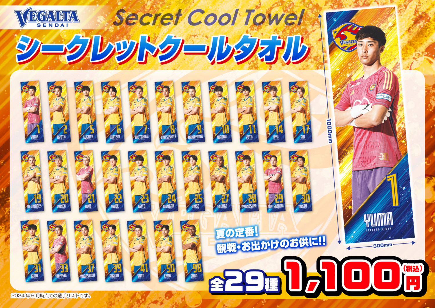 昨年好評だった選手の写真がデザインされたシークレットクータオルが今年も登場!水で濡らして暑い夏を乗り切ろう☆