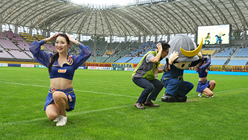 スタジアム内でシェイクアウト訓練およびコンコースにてVR(バーチャルリアリティー)による災害体験を通じた、体験型の防災学習「せんだい災害VR」の体験ブースを実施いたします。