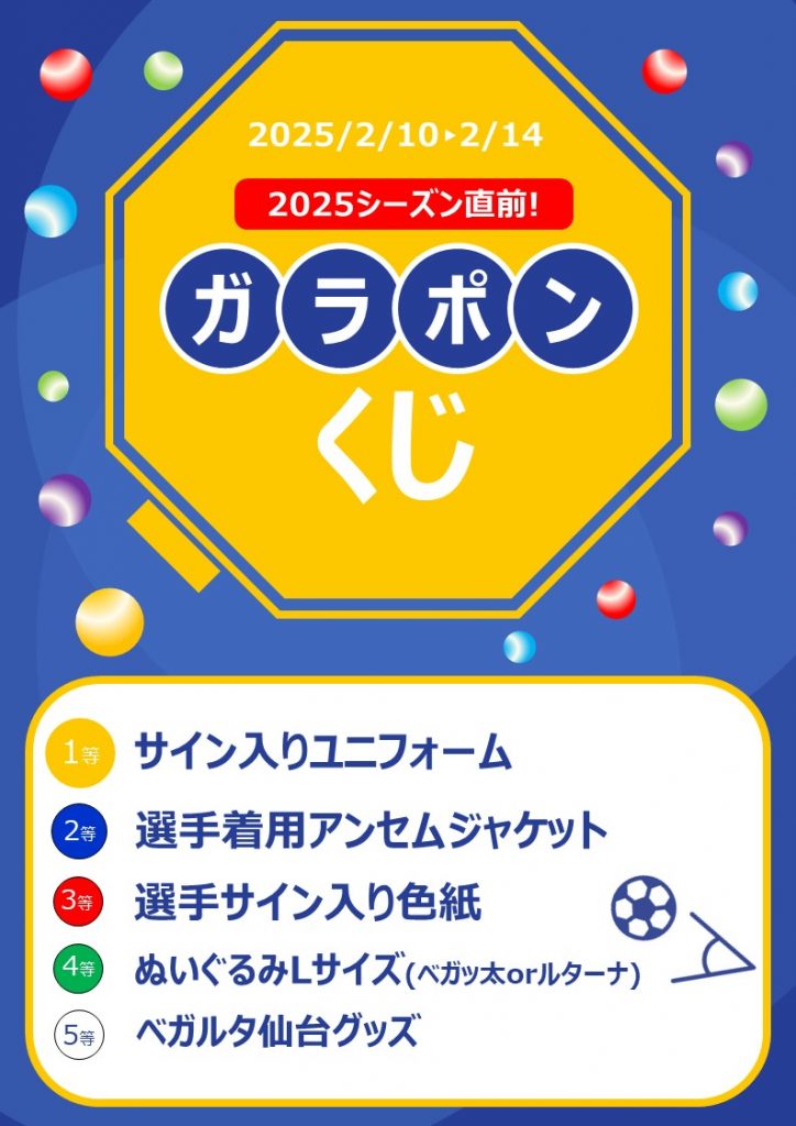 まもなく開幕する2025シーズンに向け、カーサベガルタにてはずれなしのガラポンくじを開催します!