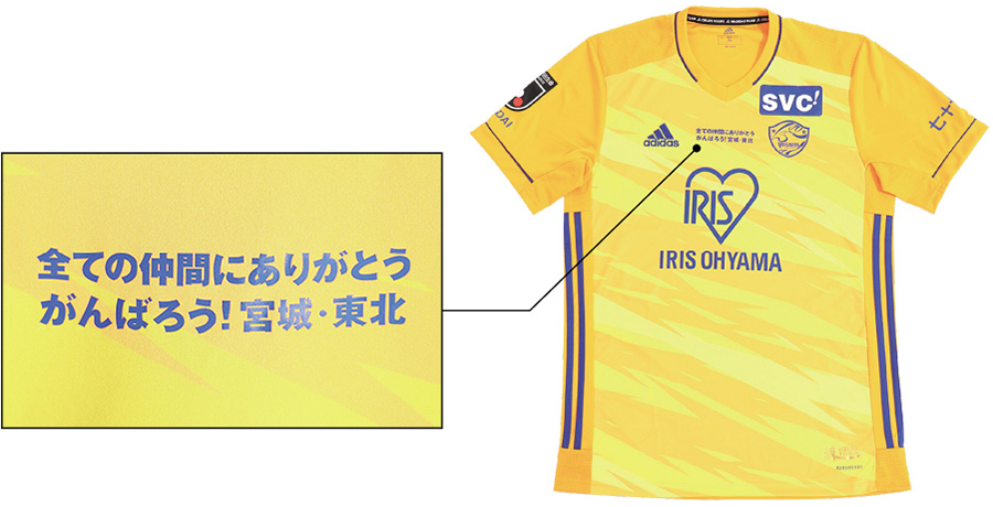 2011シーズンはユニフォームの袖に「がんばろう!宮城」のワッペンを掲出しました。2021シーズンはユニフォームの胸中央とウォーミングアップウェアの背中にプロジェクトロゴをプリントしました。ホームだけではなくアウェーでも着用し多くのみなさまへメッセージを発信します。