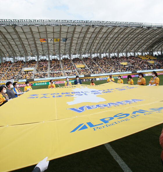 これまでの支援に感謝を示すため、アウェーゲームでプロジェクト名を入れたビッグフラッグをピッチ上で提示。子どもたちがピッチを1周して記念撮影を実施する予定です。
