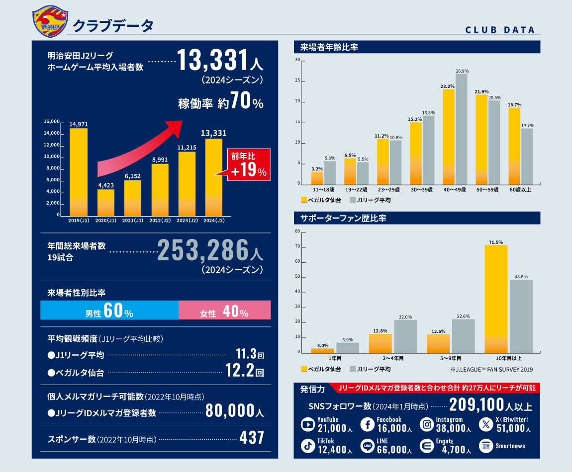 ブロンズパートナー以上の協賛でベガルタ仙台のロゴ、エンブレム、チーム名、マスコットなどを活用した商品化や、当クラブとタイアップしたキャンペーンを実施いただけます。