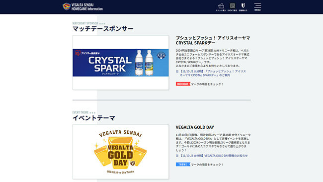 ホームゲーム1試合に冠名を付け、マッチデーパートナーとして貴社名または商品名などを露出し、各種イベントの実施が可能です。