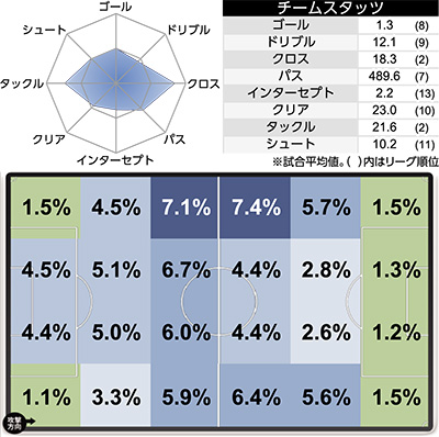 | 8 | 神戸 | 41(29) | 12 | 5 | 12 | 0 |