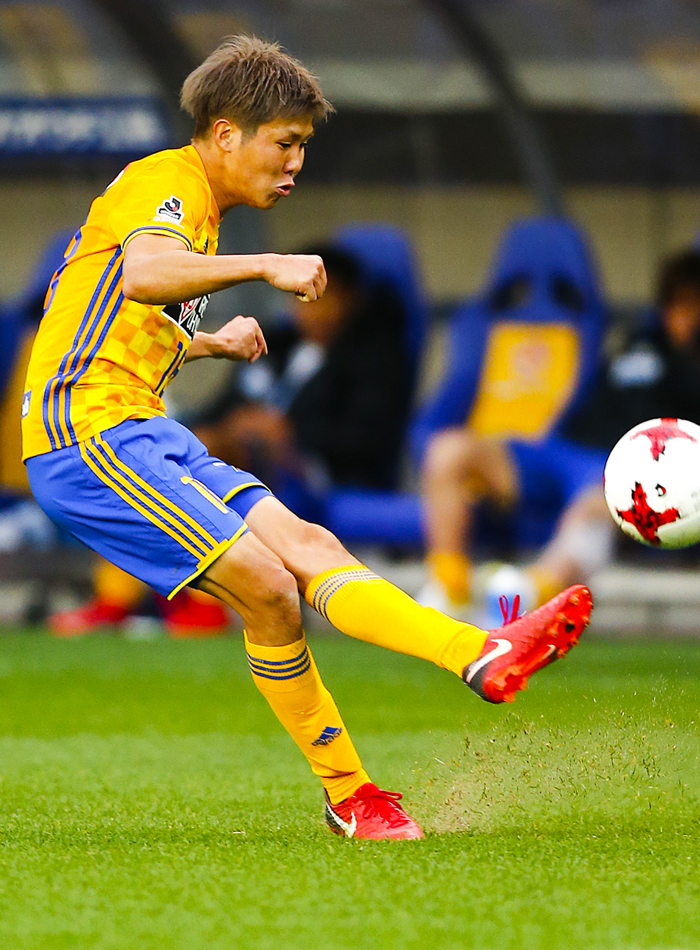 仙台サポーターに向かって攻める後半。三田啓貴が左足を振り抜き、美しい軌道のミドルシュートを決めると、サポーターの喜びは爆発した。スーパーゴールでチームの勝利を決定づけたその姿は貫禄すら感じさせた。「ガク(野津田岳人)からボールが来て、あの角度は左足で得意なコースでした。思い通りのコースに行って良かったです」。自信を持って迷わず放ったシュートだった。