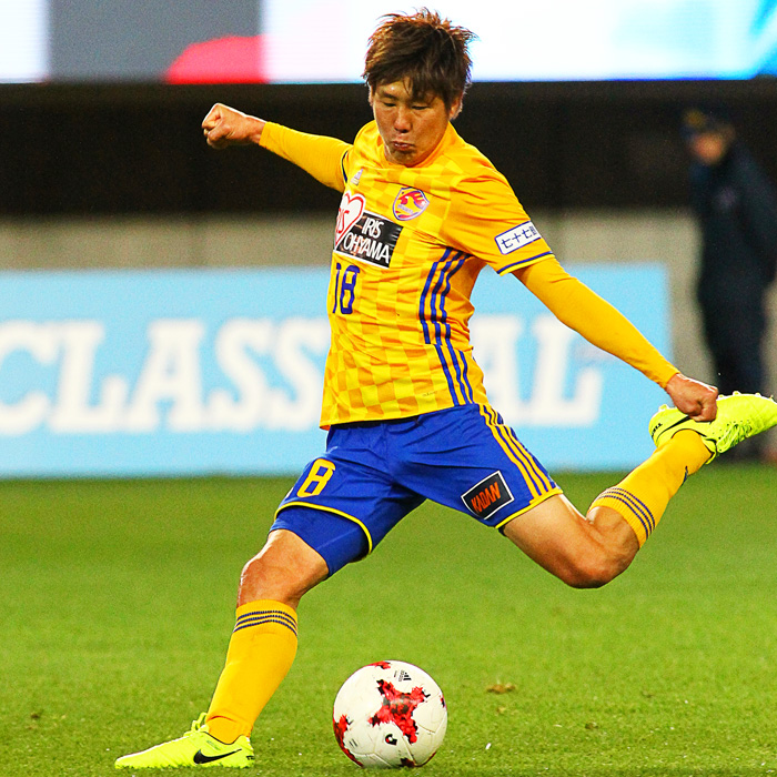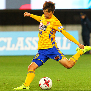 昨シーズンからボランチのレギュラーに定着。今シーズンはFC東京から完全移籍となった三田啓貴。高い意識を持ち、チームを引っ張る存在になるべく奮闘している。