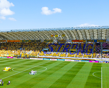 2月25日(日)ホーム開幕戦柏戦ではコレオ(人文字)をSバック指定席で行いました。Sバック指定席のみなさまにはご協力いただきましてありがとうございました。 2018シーズンのスローガンである『Be STRONG 2018 興せ、「シン」の力を』より、"STRONG"を表現して開幕戦に挑むチームへメッセージを送りました。 また、その他の席のみなさまもチアペーパーを掲げていただきましてありがとうございました。