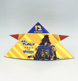 今年の「ベガルタかぶと」はユニフォームと同じ「流れ星」のイメージをベースとし、クラブ創立25周年記念事業の松本零士先生とのコラボレーション「戦国のアルカディア」を使ったデザインとなっています。