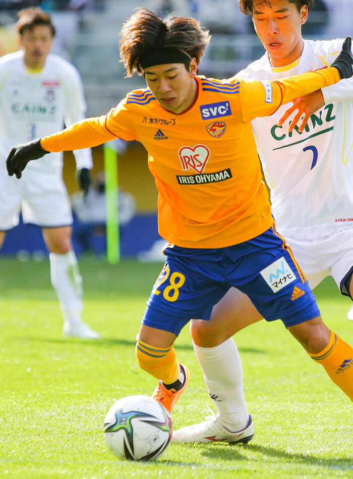 その名倉の大きな武器が、相手のプレッシャーの間をすり抜けるドリブルだ。狭いスペースでボールを受けても、ターンや加速を織り交ぜて相手の逆を突く。仙台が日頃鍛えるパスワークの中で名倉のドリブルがアクセントとして加わることで、攻撃のリズムは相手にとって読みにくいものに変わる。