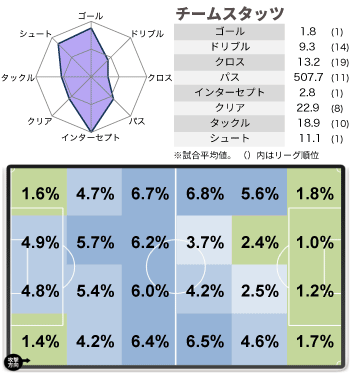 左足のキックは様々な球種を蹴り分けることが可能。サイドから攻撃の組み立てに貢献するショートパスも出せれば、サイドチェンジで局面を変えることも。目の覚める弾丸シュートも打てる。自身のプレーエリアも広く、中央に切れ込んで攻撃に関わることも珍しくない。◎鳥栖