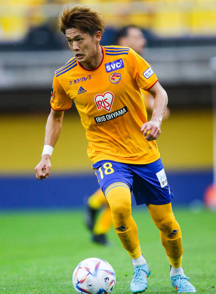 東北の隣県対決となる今節は、それぞれ異なる方法論で攻撃的なスタイルを作り上げている者同士の対戦でもある。山形はピータークラモフスキー監督のもとで、素早いボールタッチの連続と個々の鋭い前進の組み合わせを磨き、相手を崩す。攻撃の中心となるテクニシャンMF10山田康太を筆頭に、左サイドから切りこむMF17加藤大樹、ゴール前の仕事人FW9デラトーレといったタレントがポジションを入れ替えながら相手の隙間に走りこんでくる。けが人が多く出ている中でも、ピッチに立った選手たちがしっかりコンビネーションを実戦。守る側にとっては個人を止めるのではなく、複数の攻撃パターンを想定して対処する必要がある。仙台の守備の立て直しが問われる相手だ。