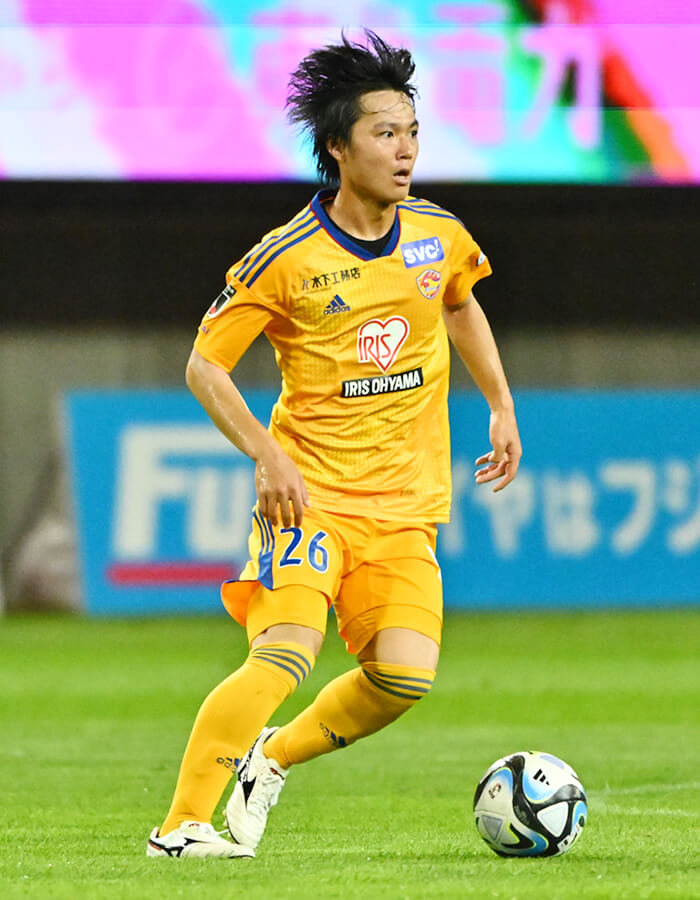 今節の相手・藤枝とは、今シーズン既に公式戦で2回対戦しており、仙台はそのスタイルを十分体感済みだ。藤枝はこの2023シーズンに初めて戦うJ2の場で、その攻撃的なスタイルを存分に発揮している。ボール奪取の位置が高く、守備から攻撃に切り替えれば多くの人数が攻撃に参加。さらに、多くのドリブラーを擁し、個人での勝負も果敢に挑む。特にウイングは人材が豊富で、MF27榎本啓吾を筆頭に、サイドから勢いよく攻めこんでくる。JFA・Jリーグ特別指定選手のMF49永田貫太のような新しいスピードスターも出てきた。彼らにパスを供給するMF7水野泰輔の存在も大きい。